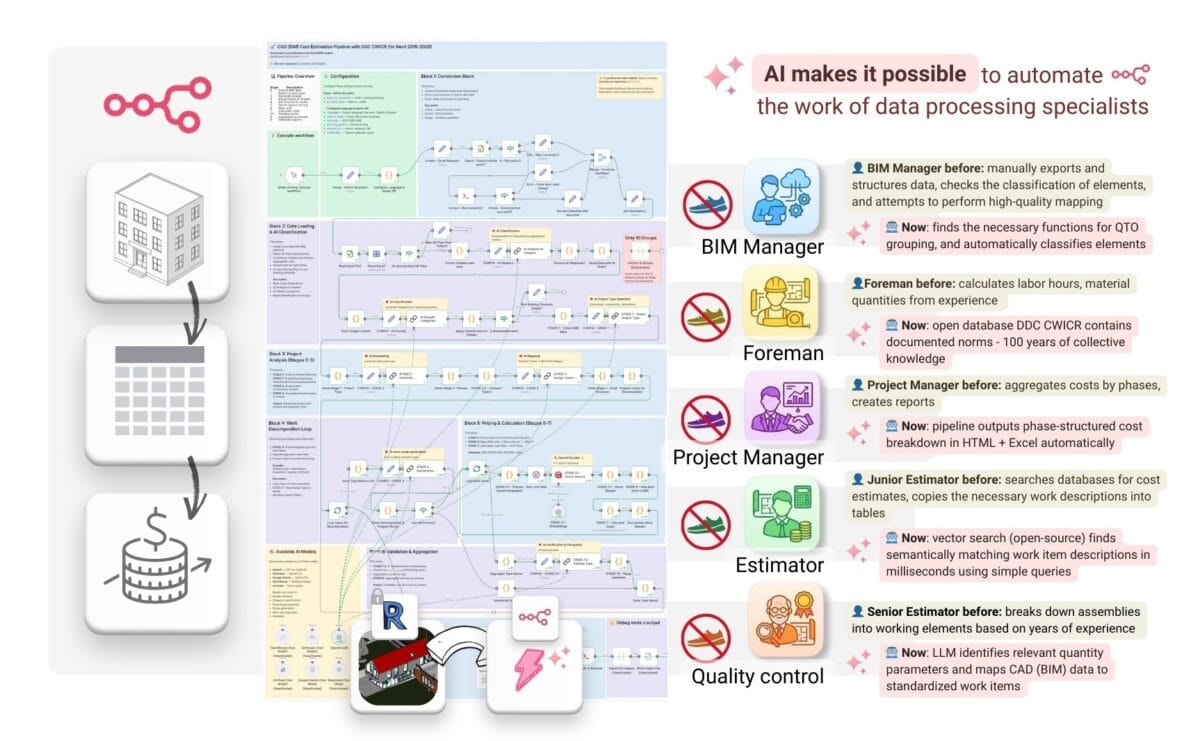 Traditional roles - BIM manager, estimator, PM - are gradually ceasing to be “manual data operators.” The key competency is no longer how to manually check a table and find the right group, but how to correctly compile a prompt, adjust workflow parameters.